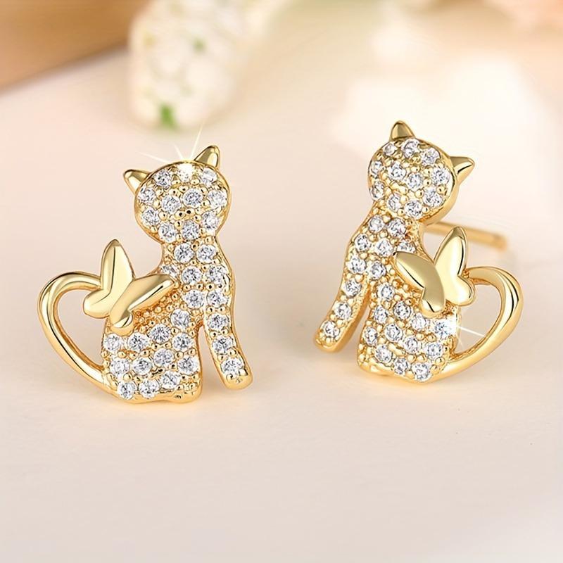Elegant Cat Earrings Synthetic Zirconia Cute Animal Theme Jewelry Perfect for Women's Daily Wear and Party Gifts