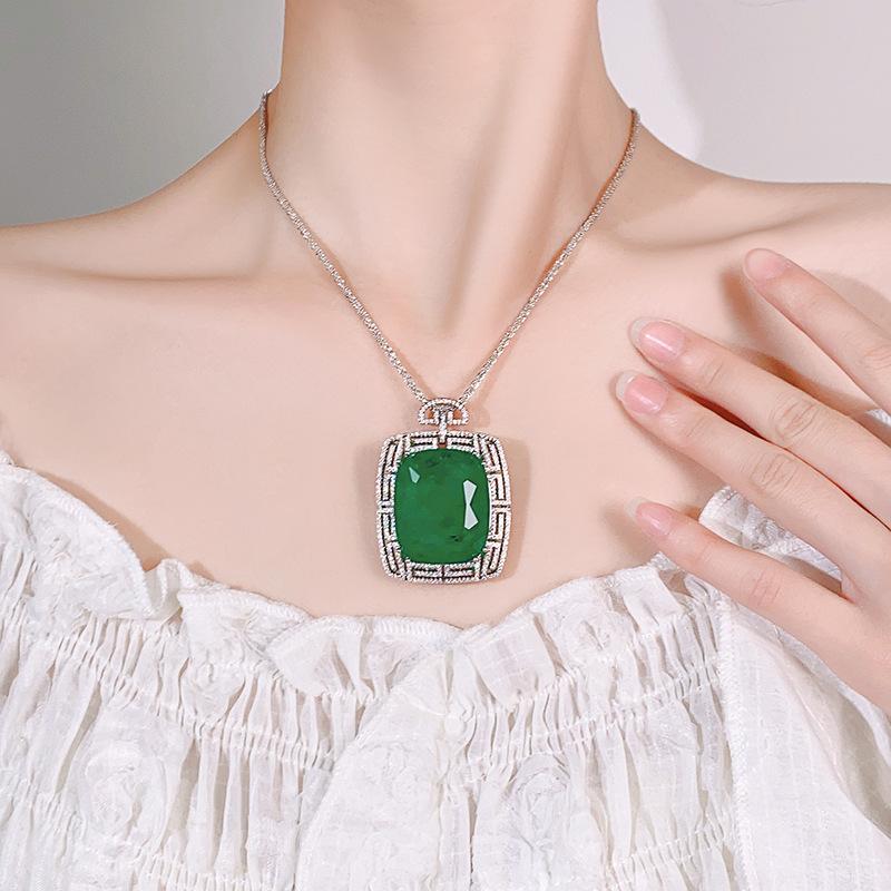 New Jewelry Necklace Emerald Color Vintage Women's Style Banquet Fashion Large Square Pendant Light Luxury