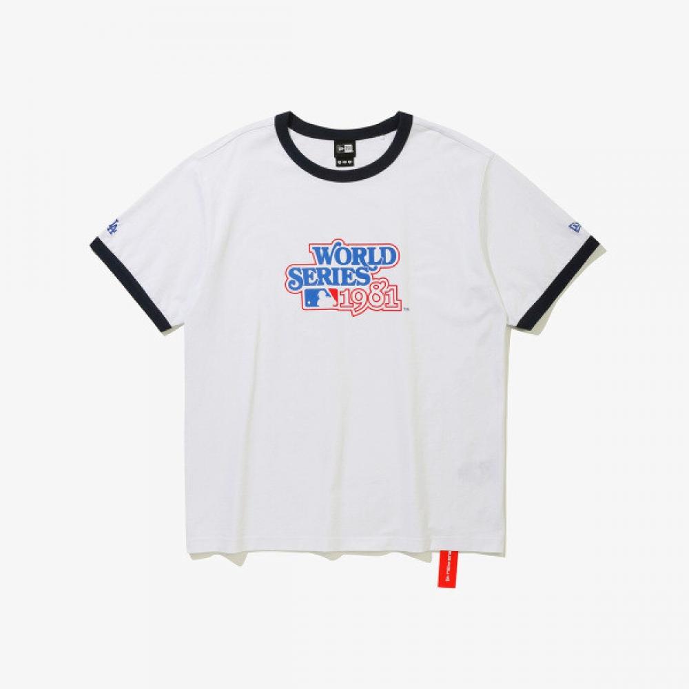 Camiseta Branca Ringer MLB LA Dodgers World Series da New Era(Modelo não. 15147506) faz parte da coleção de camisetas Ringer da World Series da MLB, expressando o legado da World Series do time LA Dodgers através de gráficos. Apresenta um estilo clássico de gola e mangas contrastantes, proporcionando um ajuste confortável.. Esta t-shirt é desenhada com o gráfico do anel de campeão, um símbolo da vitória na World Series.. O material principal é algodão 100% de alta qualidade, utilizando o excelente tecido C00L ERA™, conhecido pela sua respirabilidade e absorção de humidade.. A cor é baseada em branco com detalhes contrastantes.