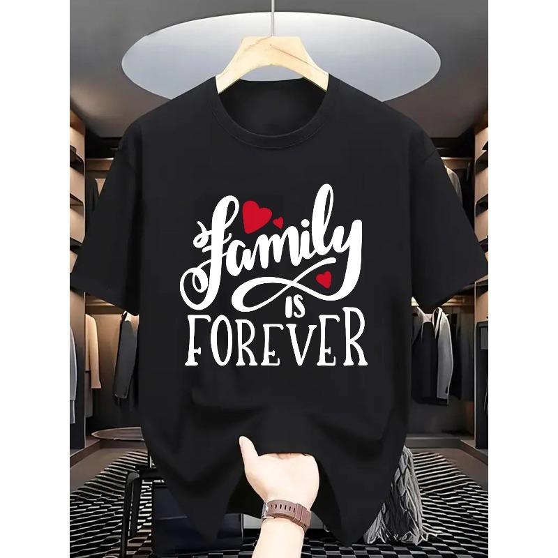 European sizes Men'S Summer Casual Crew Neck T-Shirt,Knit Fabric, Slight Stretch, "Family Forever" Print, Regular Fit Available