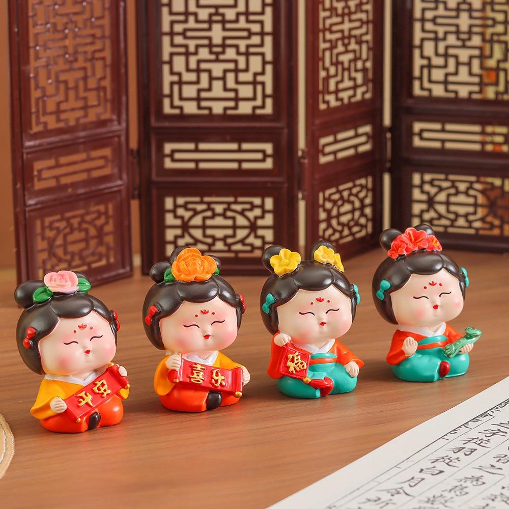 Art Craft Car Cute Doll Ornament Decorative Tang Dynasty Woman Figurine Bookshelf
