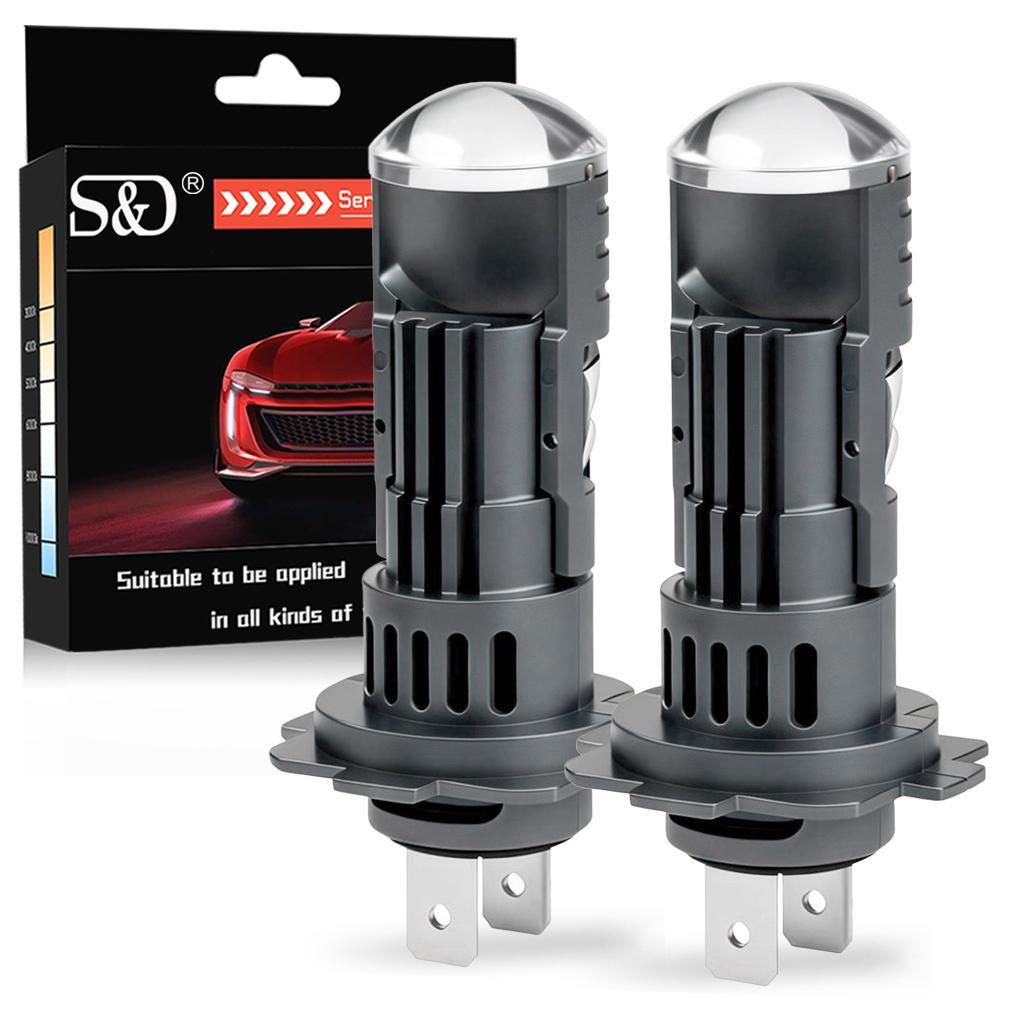 2Pcs H7 LED Projector Lens Headlight Bulbs LHD 1:1 Mini Size Wireless Super Bright 40000Lm Turbo Headlamps Hi/Lo Beam Plug&Play Lamp 12V 6000K