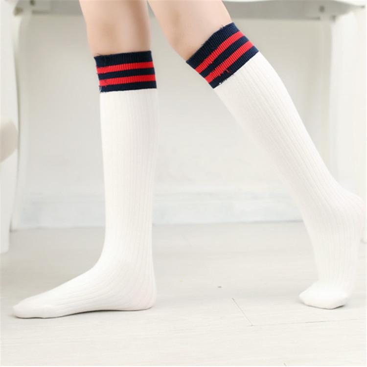 Children's Striped Cotton Sports Mid-Calf Socks, Spring & Autumn, Two-Bar Design, Basketball Style