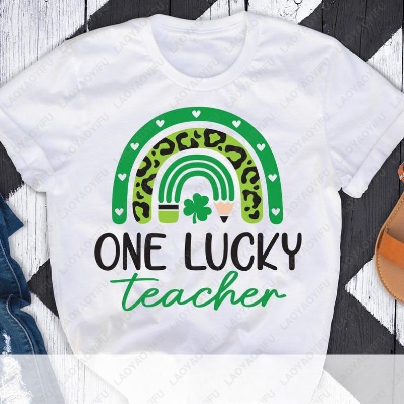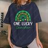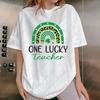 St Patricks Day One Lucky Teacher Cotton Tees Rainbow Lucky Shamrock Graphic T Shirts Teacher Unisex Shirt Funny Holiday Gifts