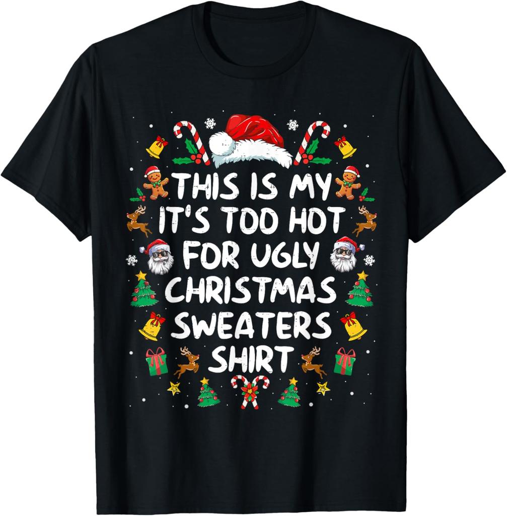 Its Too Hot For Ugly Christmas Funny Xmas trees candy cane bell SantaClaus elk Christmas hat gift Lovely printed Tshirt tops