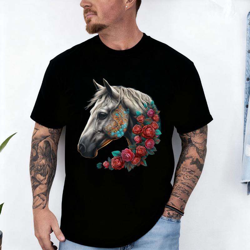 Horse Mandala Flower Animal Motif Horse Cotton TShirt Men and Women Crew Neck Short Sleeve Soft Casual Outdoors Fashion Tees