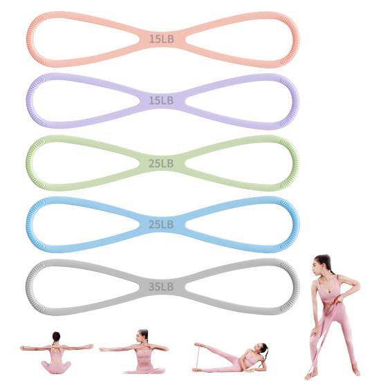 Treino de Força Direcionado: O design único em Figura 8 desta faixa de resistência de silicone permite o direcionamento preciso de grupos musculares para treinamento de força e alongamento eficazes.. Ideal para expansão do peito, musculação e modelagem do quadril, aprimora as rotinas de ioga e os treinos de academia com exercícios versáteis.
