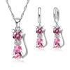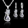 Conjuntos de Joias de Moda em Prata com Zircônia Cúbica Prata 925 Fofo Formato de Gato Conjunto de Colar e Brincos Argola Para Mulheres/Meninas Presentes