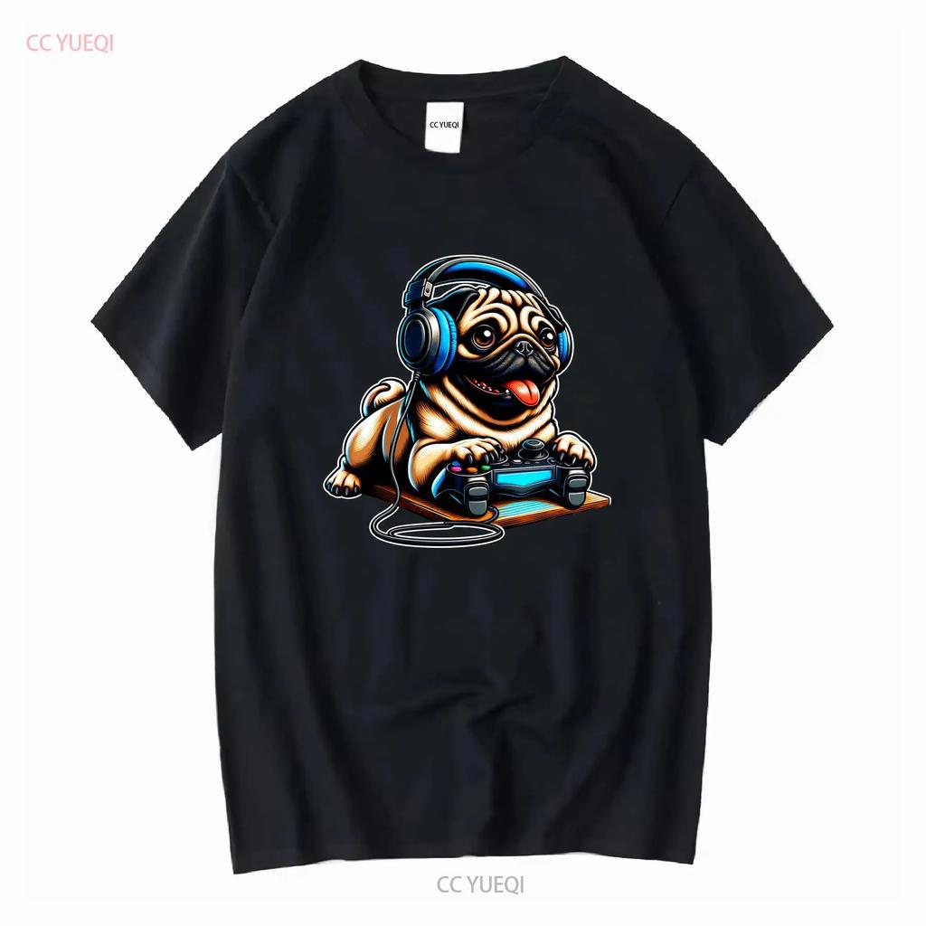 Pugs Dogs Playing Gamer Funny Pug Dog Breed Cute Puppies T Shirt vintage Washed Casual Comfortable Stretched vintage Washed