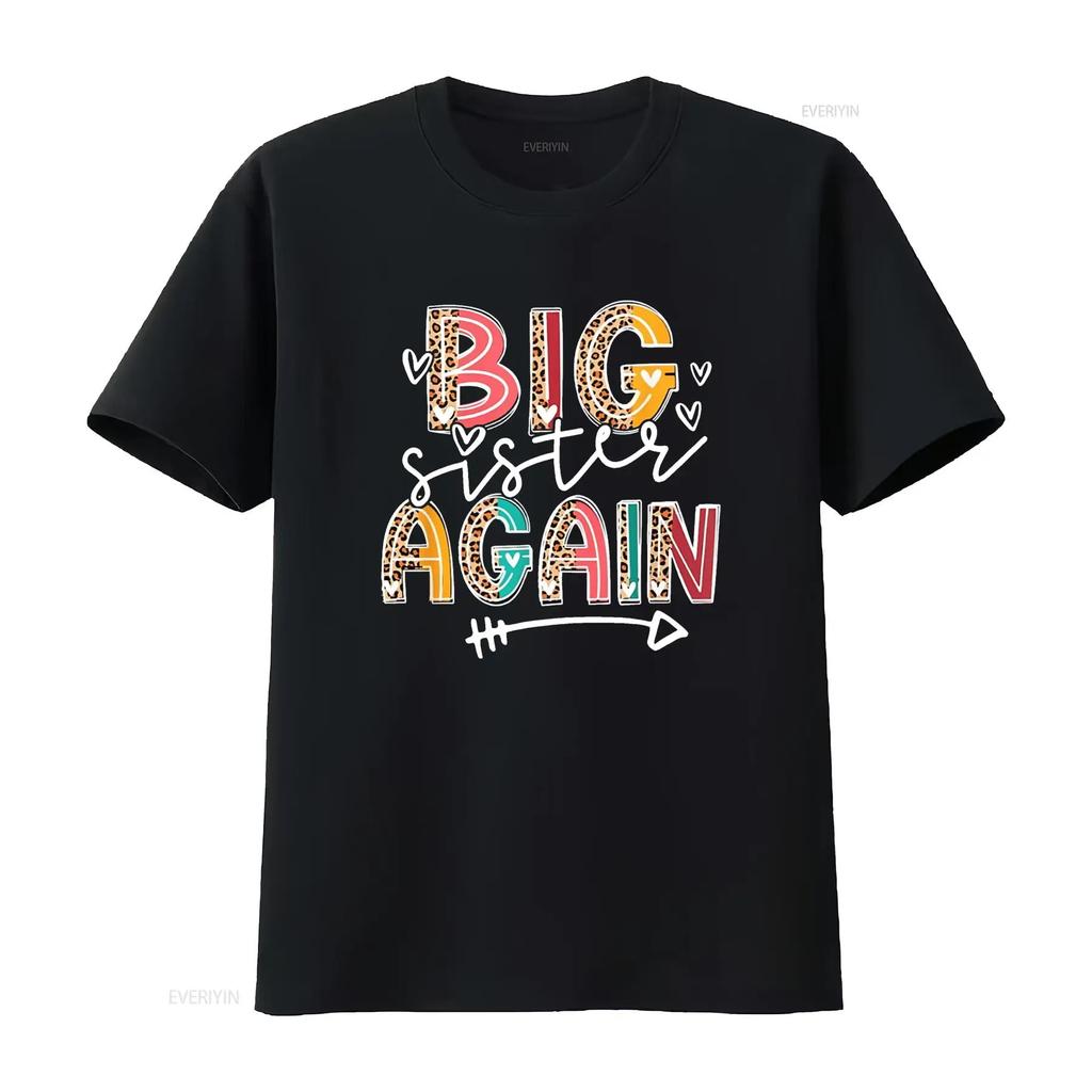 Big Sister Again Leopard Soon To Be Sis Announcement Girls T Shirt Black Medium vintage Washed Stylish graphic streetwear