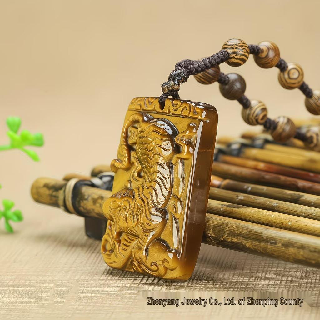 Men's Zodiac Tiger Pendant: Natural Tiger Eye Stone Necklace - Year of the Tiger, Fierce Tiger Design