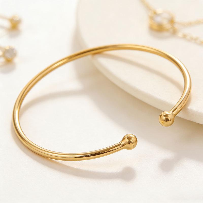 Adjustable Metal Arm Bracelet with Dual Balls & Water Drop Design: Exaggerated Style for Women