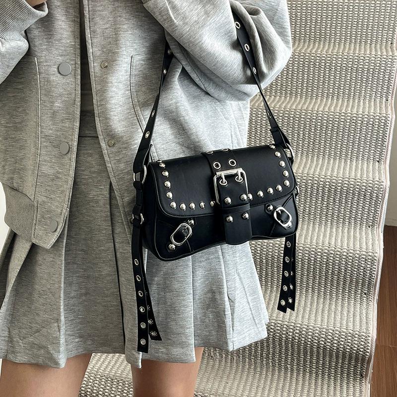 Bolsa de Axila Estilo Punk Tendência Bolsa de Axila Grande Capacidade Bolsa de Mão Estilo Vintage Bolsa de Ombro com Design de Rebites Para Mulheres