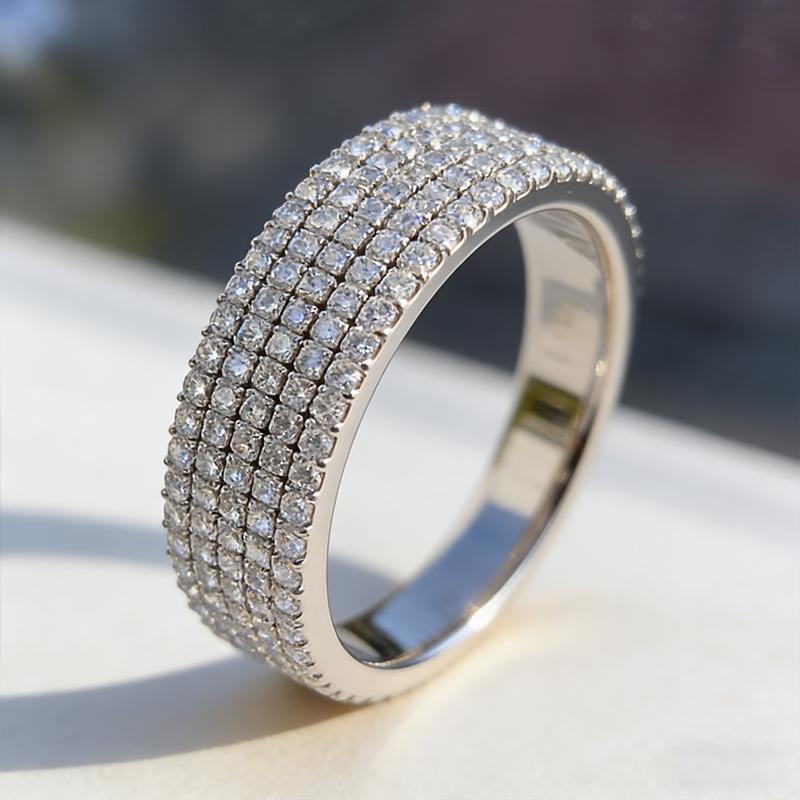 Luxury five row full diamond zircon women's ring, personalized and versatile, exquisite and high-end, elegant ring