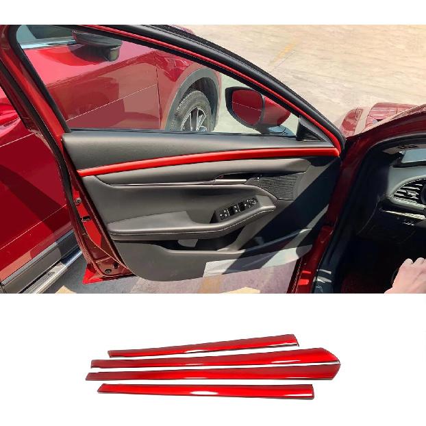 Car Accessories Fit for 2019 2020 2021 2022 2023 2024 2025 Mazda 3 Axela Inner Side Door Panel Strip Cover Trim (Carbon Fiber Style) ABS 4 PCS