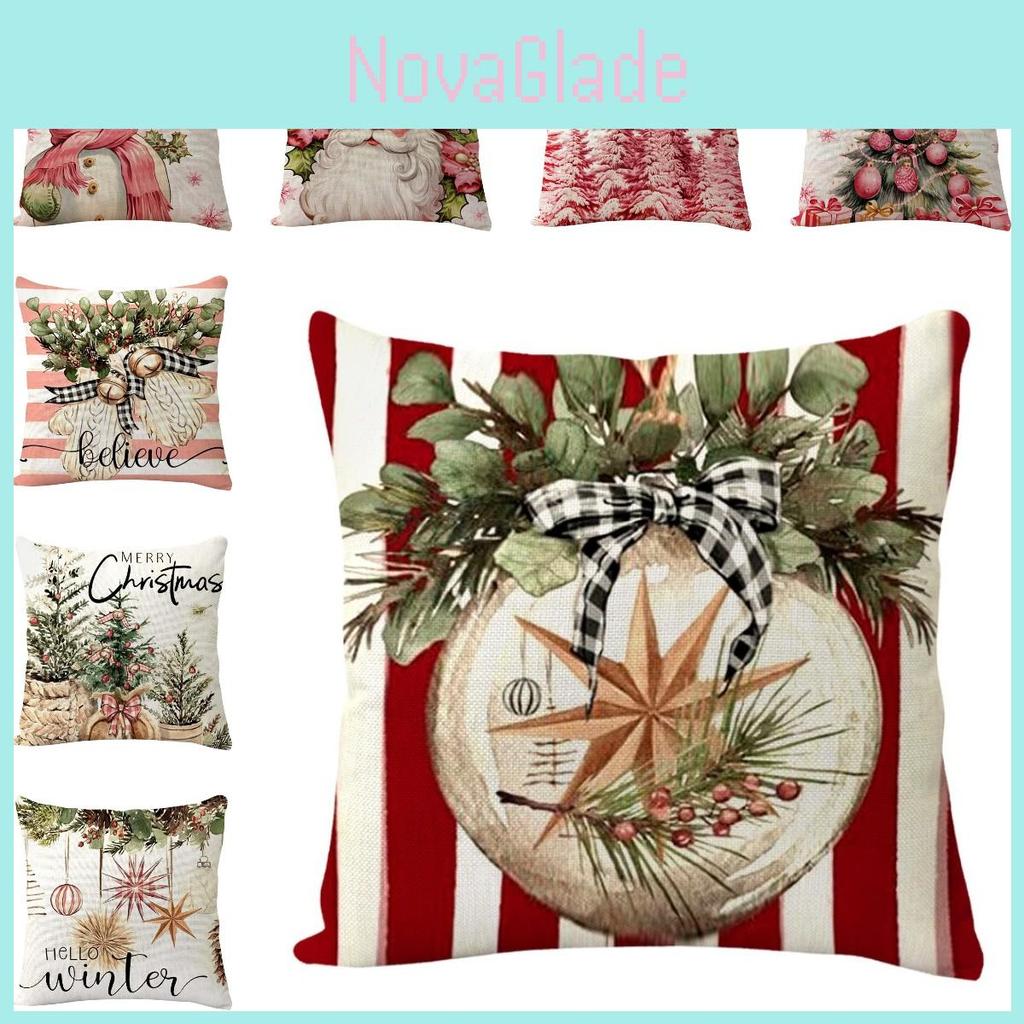Conjunto de Quatro Capas de Almofada de Linho com Tema Natalino Moderno Minimalista para Decoração de Casa