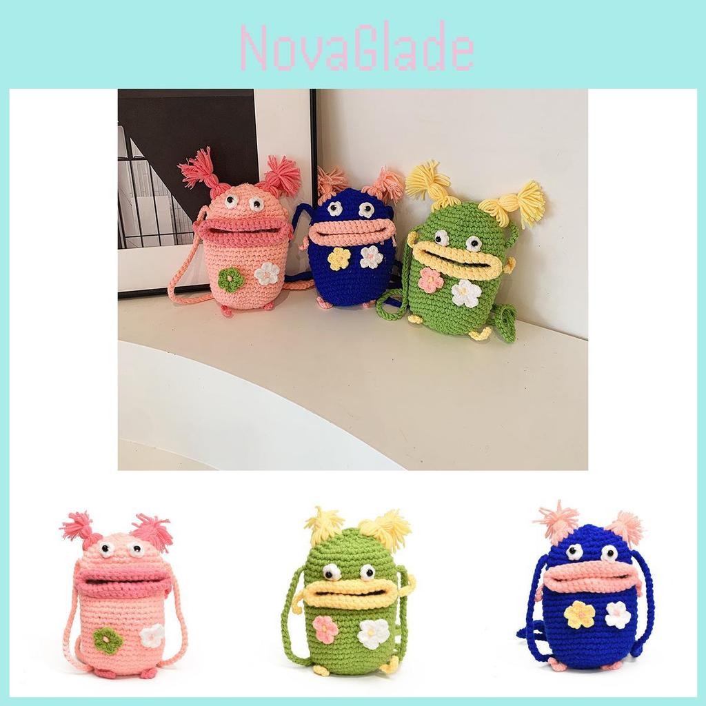Adorável e Colorida Bolsa Balde Infantil de Crochê em Estilo Desenho Animado Para Crianças