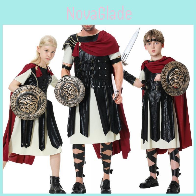 Fantasia Deslumbrante de Guerreiro Romano Antigo Para Crianças e Adultos Com Capa, Escudo e Espada