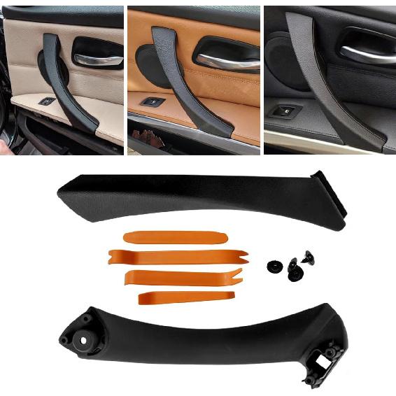 Black Left Interior Door Panel Strap Handle and Door Pull Outer Trim Cover w/Fasteners Replacement for E90 E91 3 Series 323 325 328 330 335 2005-2011