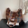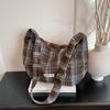Retro Ctrast Color Plaid Women Woolen Crossbody Bags Versatile Ladies Shoulder Underarm Bag Large Capacity Girls Tote Handbag
