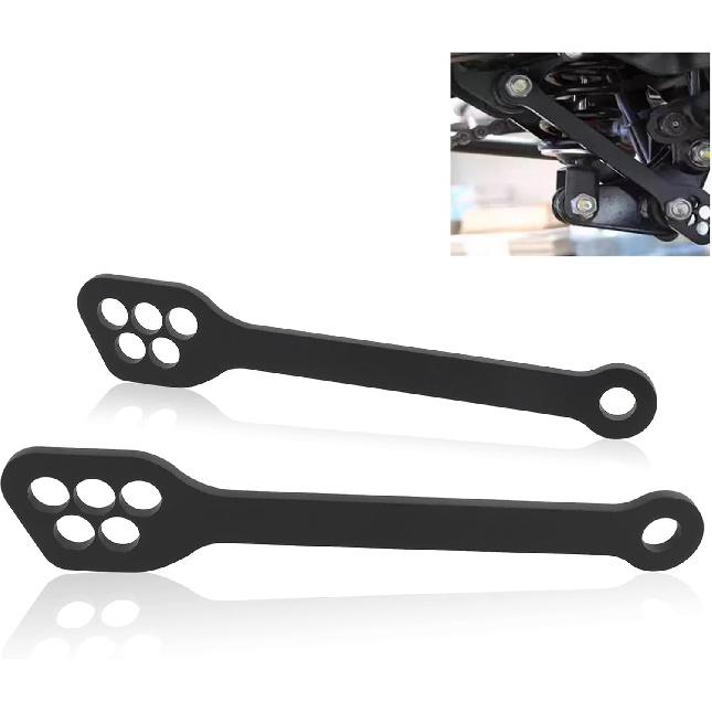 O PACOTE CONTÉM: 1 par de kit de link de rebaixamento para motocicleta. Fácil de instalar com os parafusos de fábrica, a instrução de instalação não está incluída