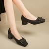 Verão Novo Feminino Couro Genuíno Francês Cartão de Leite Salto Grosso Salto Alto Sapatos de Trabalho Couro Macio Não Cansam Sapatos Únicos