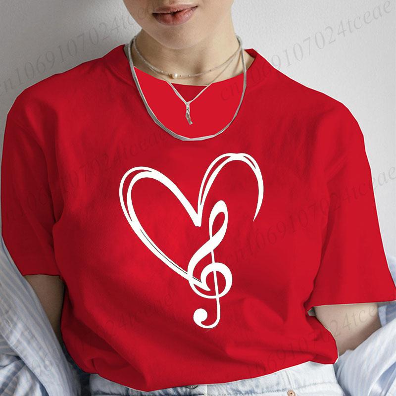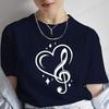 Musical Note Heart Print Unisex T Shirt Short Sleeve O Neck Unisex Tshirt Ladies Fashion Tee Shirt Tops Clothes Camisetas Mujer