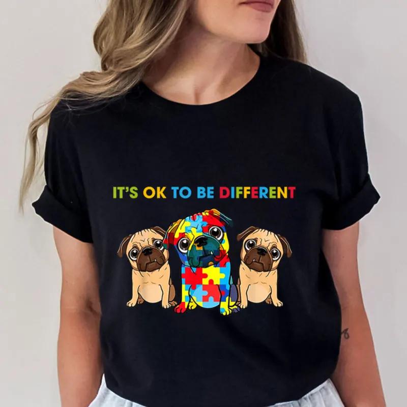 Cute Pug Dogs Its Ok To Be Different Autism Awareness Unisex T Shirt Summer Tee Shirt Streetwear Hip Hop for Kids Female Tops