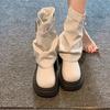 Botas de Tornozelo Pretas com Fivela da Moda para Mulheres Botas de Combate Femininas de Plataforma Grossa Slip-on Punk de Couro PU da Moda