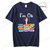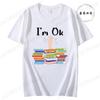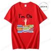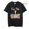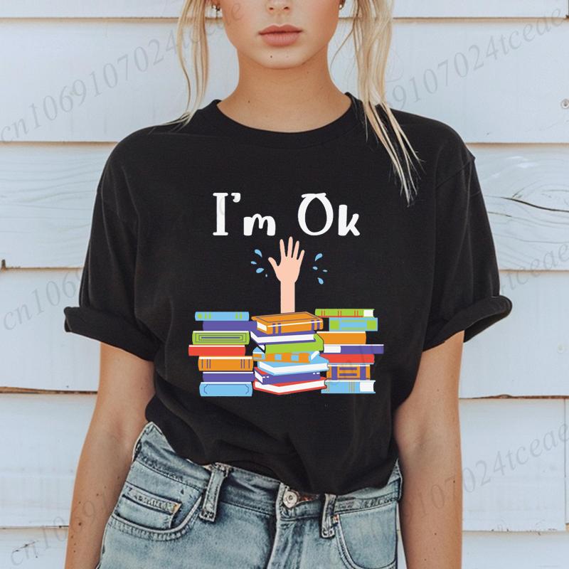 Unisex Funny Book Print Tshirt Girl Short Sleeve Crew Neck Casual Top for Summer Spring Im Ok Bookish Reading Unisex Clothing