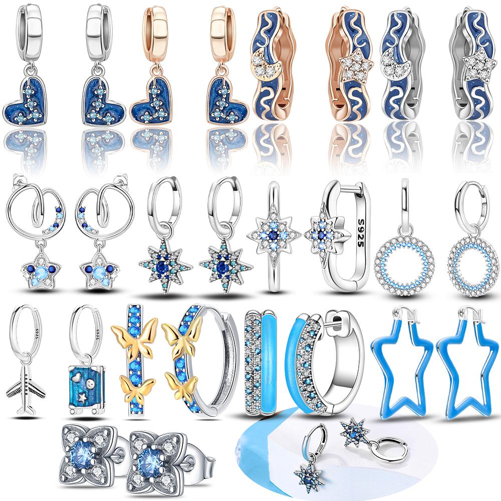 925 Silver Earrings Blue Zircon Stars Butterfly Love Heart Jewelry Women Earrings Luxury Accessories Graduation Gift