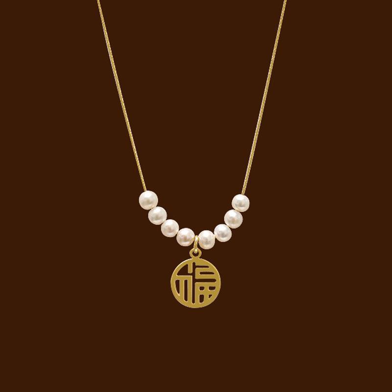 Transshipment Fu brand Fu character pearl collarbone necklace neck chain niche design sense round versatile women's design sense jewelry