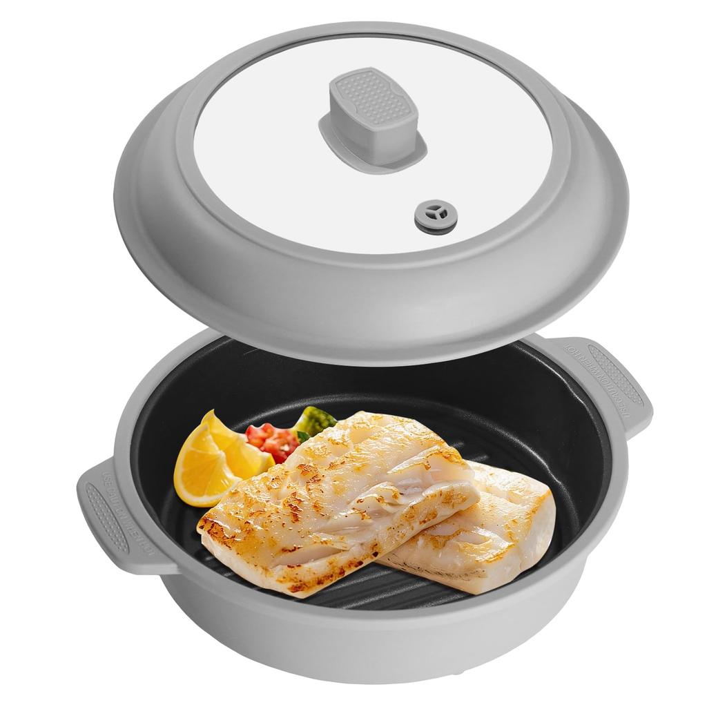 GOOSE GGG Microwave Cooking Grilling Grilling Aluminum Silicone Microwave Cooking Kitchen Round Shape GLOU-GLOU Utensil, 8-in-1 Function Fish,
