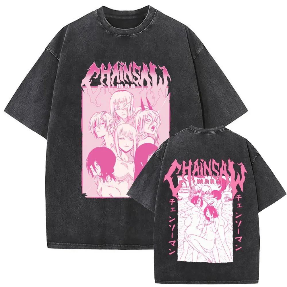 2026 Washed Vintage Anime Chainsaw Man Himeno Graphic T-shirt Men Women Casual Cotton Retro T Shirts Men's Cartoon Oversized T-shirts