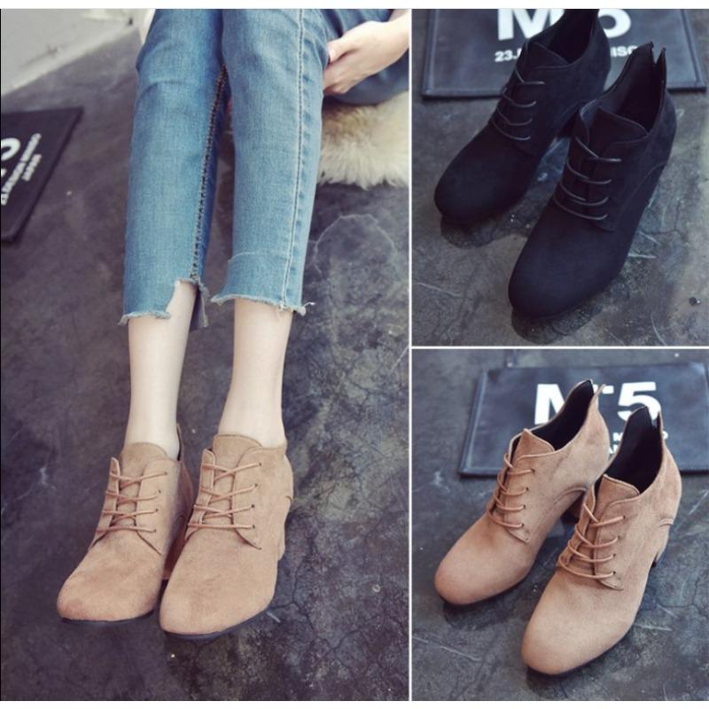 2026 Spring Fall Retro Oxfords Block High Heels Faux Suede Office Lady Daily Shoes Lace Up Comfort Pumps Pus Size
