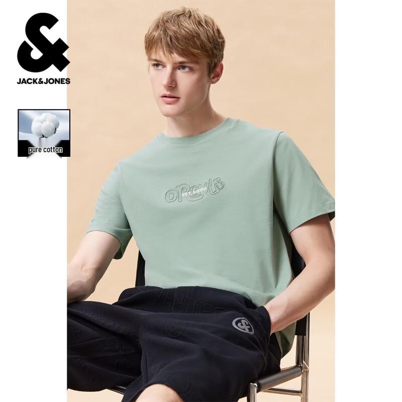 JACK&JONES Men's Letter Embroidered Short Sleeve Round Neck T-Shirt