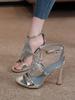Sexy Women Heels Gold High Heels Sandals Thin Single Strap Metal Stiletto Sandals Silver Heel Shoes Party Evening Wedding Shoes