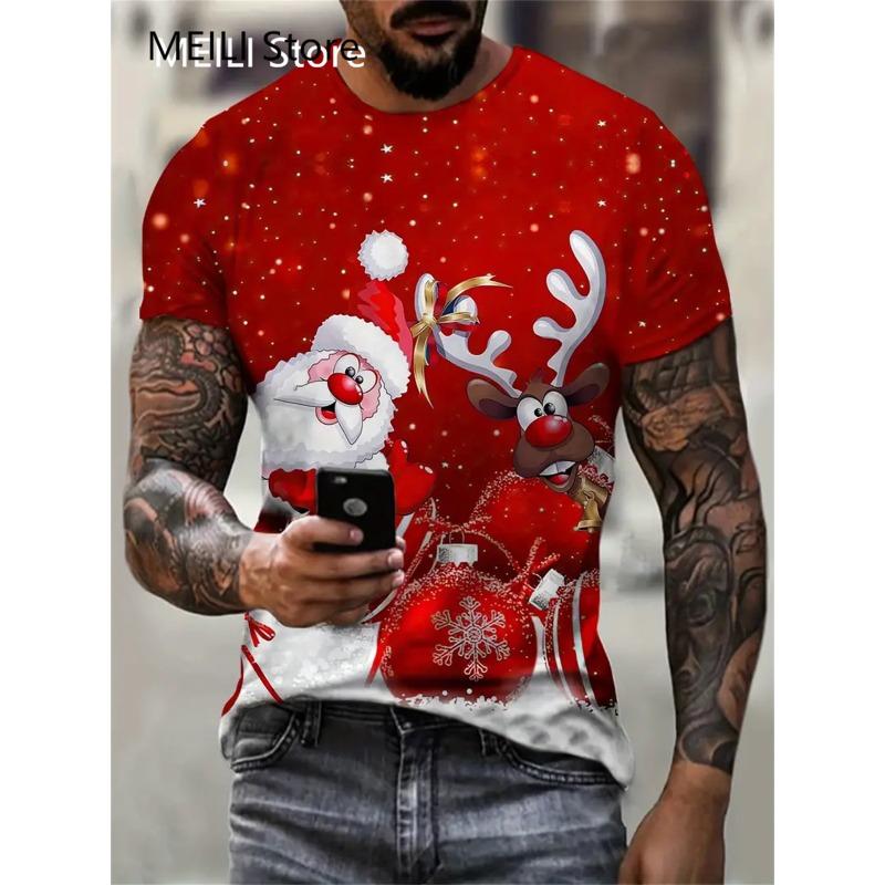 Camiseta Masculina Papai Noel Estampa Gráfica Pulôver Verão Casual Manga Curta Camiseta Engraçada Camisetas Masculinas Natal Roupa Oversized