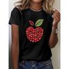 Apple Shape with Heart Shapes Print T-shirt, Short Sleeve Crew Neck Casual Top for Summer & Spring, Women's Clothing