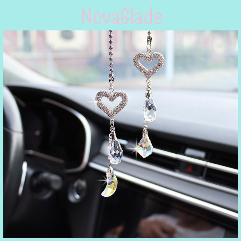 Car Rearview Mirror Pendant Decorative Crystal Hanging Ornament Simple Style Diamond Material