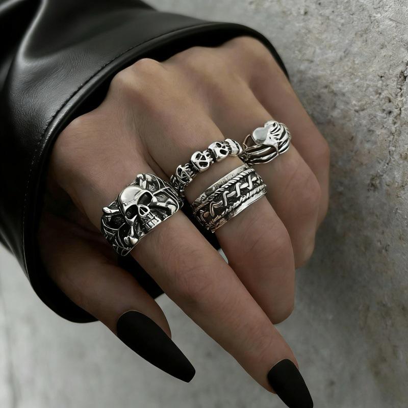 Retro Punk Skull Hollow Out Unisex Stackable Ring - European & American Style