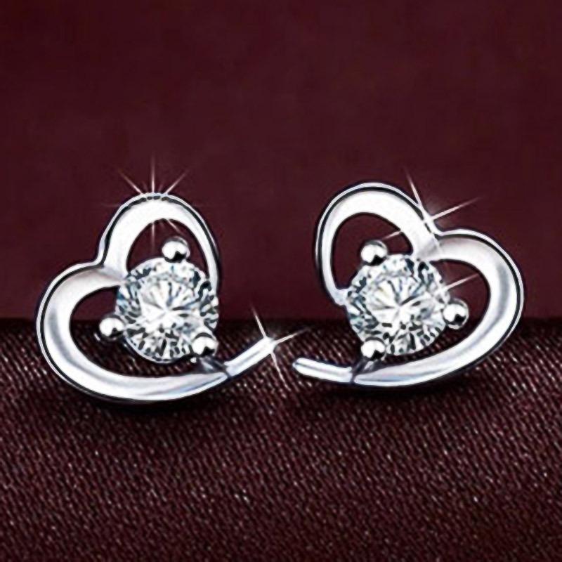 Ear jewelry Women's soft heart-shaped silver-plated stud earrings jewelry
