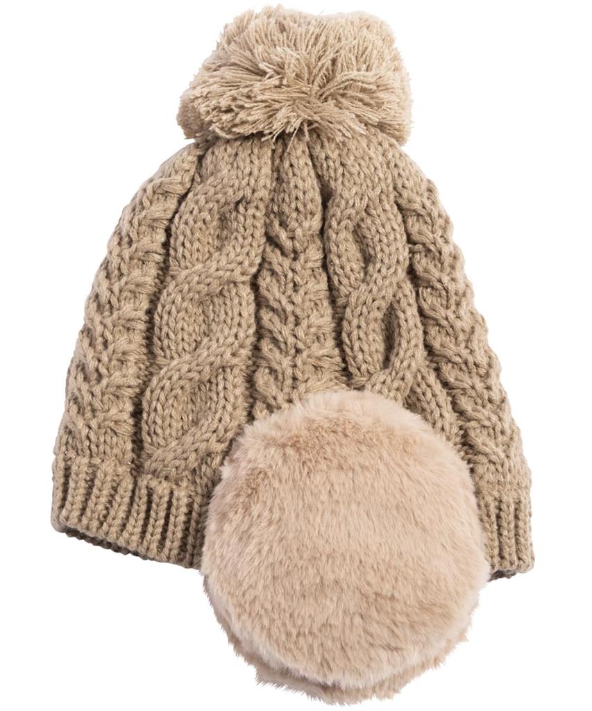 Knit Relaxed Faux Fur Heather Plus Unisex Size [Loo&c] Women's Hat, Fit, Earflaps, Pom-Pom Knit, Size, Warm, Autumn/Winter, [Free (56-64cm) - Beige]