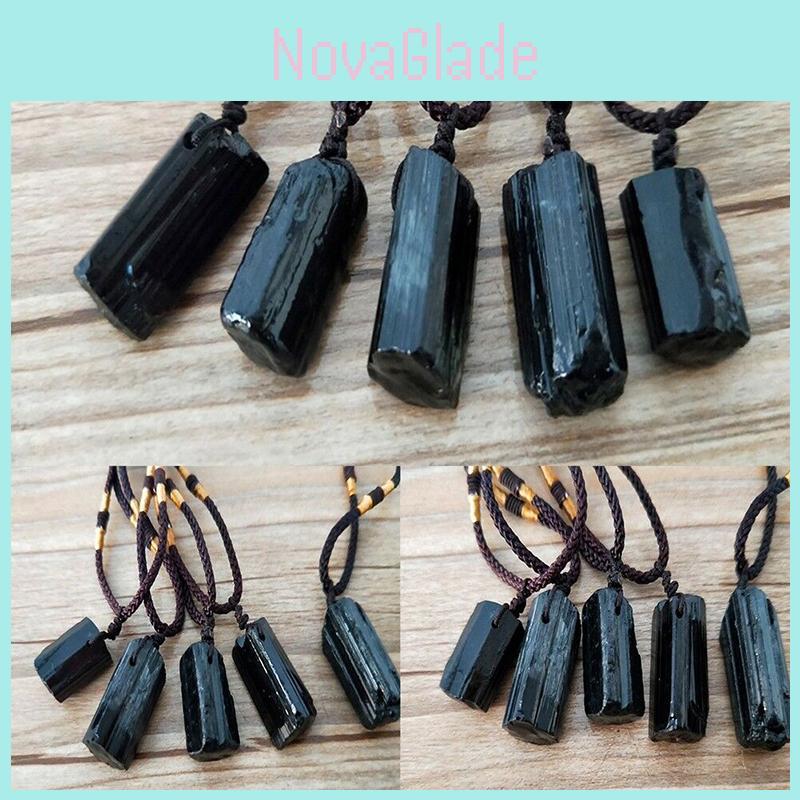 Colar de Pingente de Turmalina Negra Schorl Natural Bruta Único com Forma Irregular e Corrente Ajustável