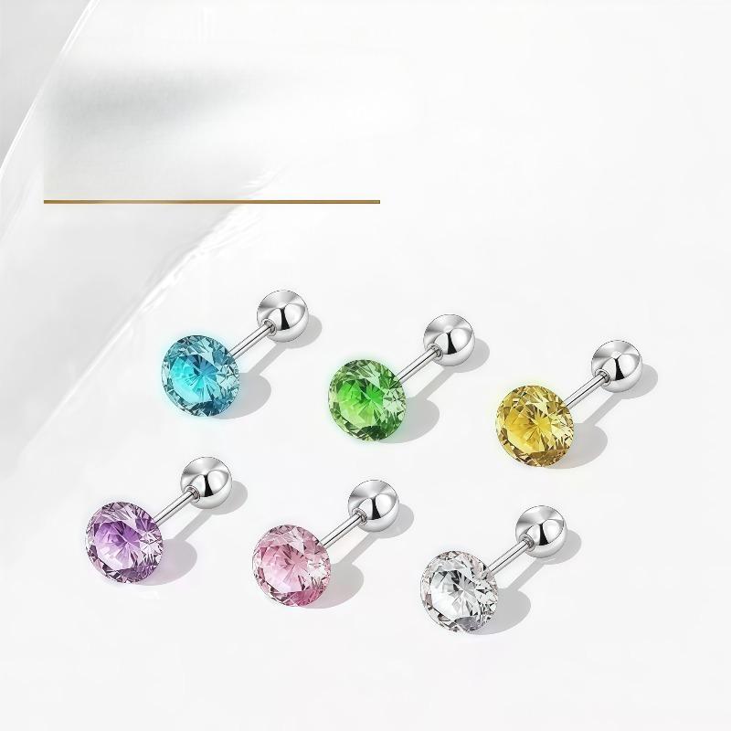 Brinco Stud de Osso da Orelha com Rosca de Zircônia para Piercing na Orelha. Brinco de Estilo de Luxo. Brinco de Lóbulo de Aço Inoxidável Não Removível.