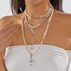 Cross Heart Faux Pearl Multi-layer Necklace - Y2K Style