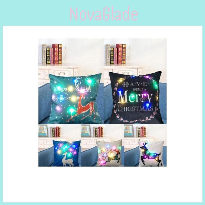 Capa de Almofada Decorativa de Natal de Qualidade Premium em Algodão e Linho com Luzes LED para Decoração de Casa