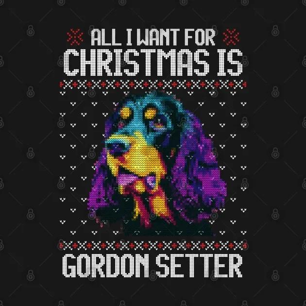 Tudo o que Quero para o Natal é Gordon Setter Camiseta Divertida para Amantes de Cães 100% Algodão Gola Redonda Manga Curta Casual Camiseta Masculina