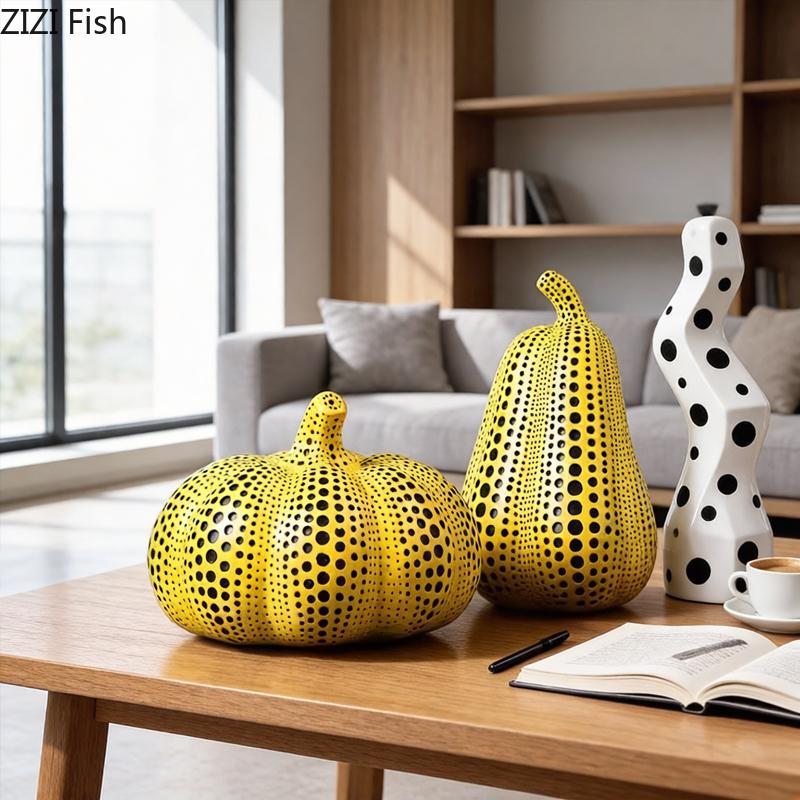 Polka Dot Art Pumpkin Sculpture Yellow Pumpkin Handicraft Desk Decoration Resin Artwork Ornaments Modern Home Decor Accessories