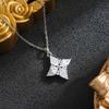 Cubic Zirconia Four-Leaf Flower Pendant Necklace - Trendy Titanium Steel Design
